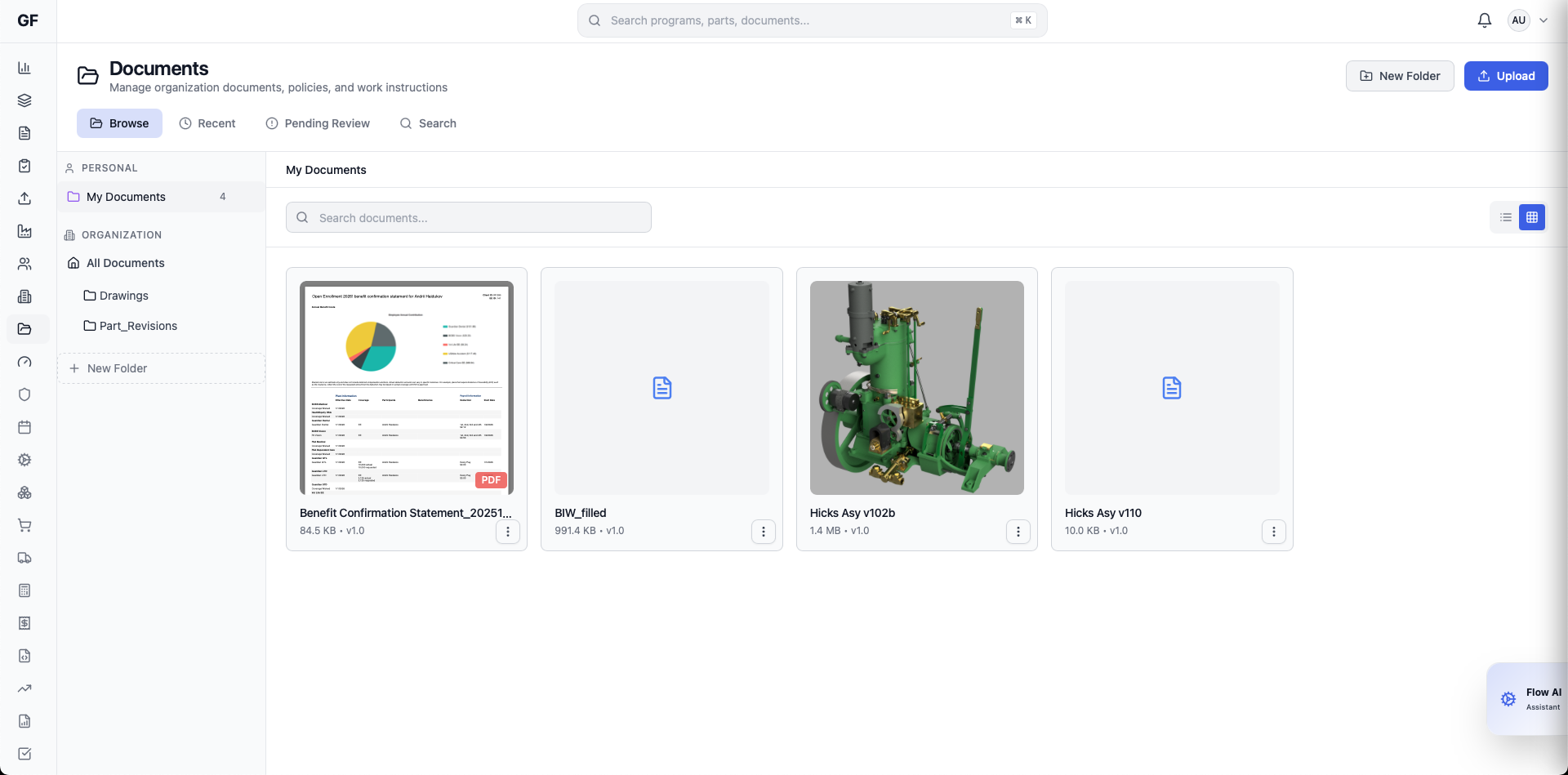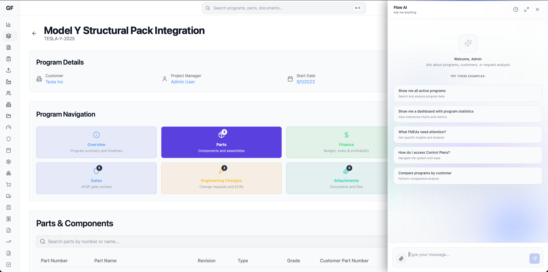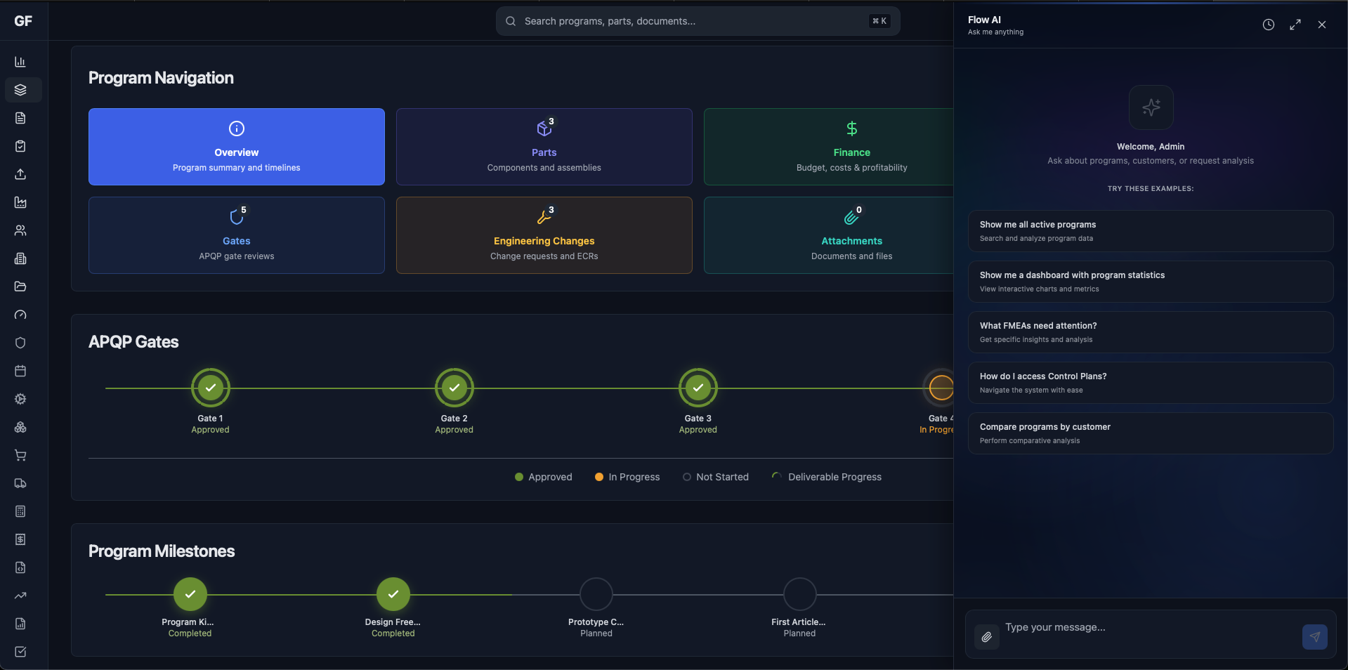 Search across all modules - parts, programs, work orders, documents, and quality records