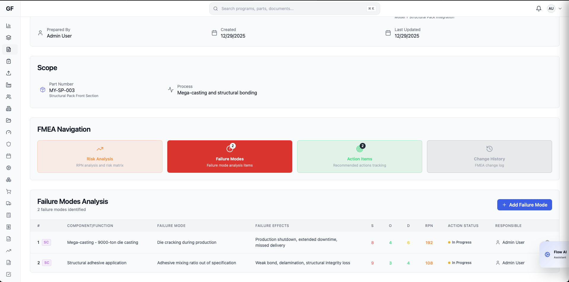 Failure Mode and Effects Analysis tool with risk prioritization